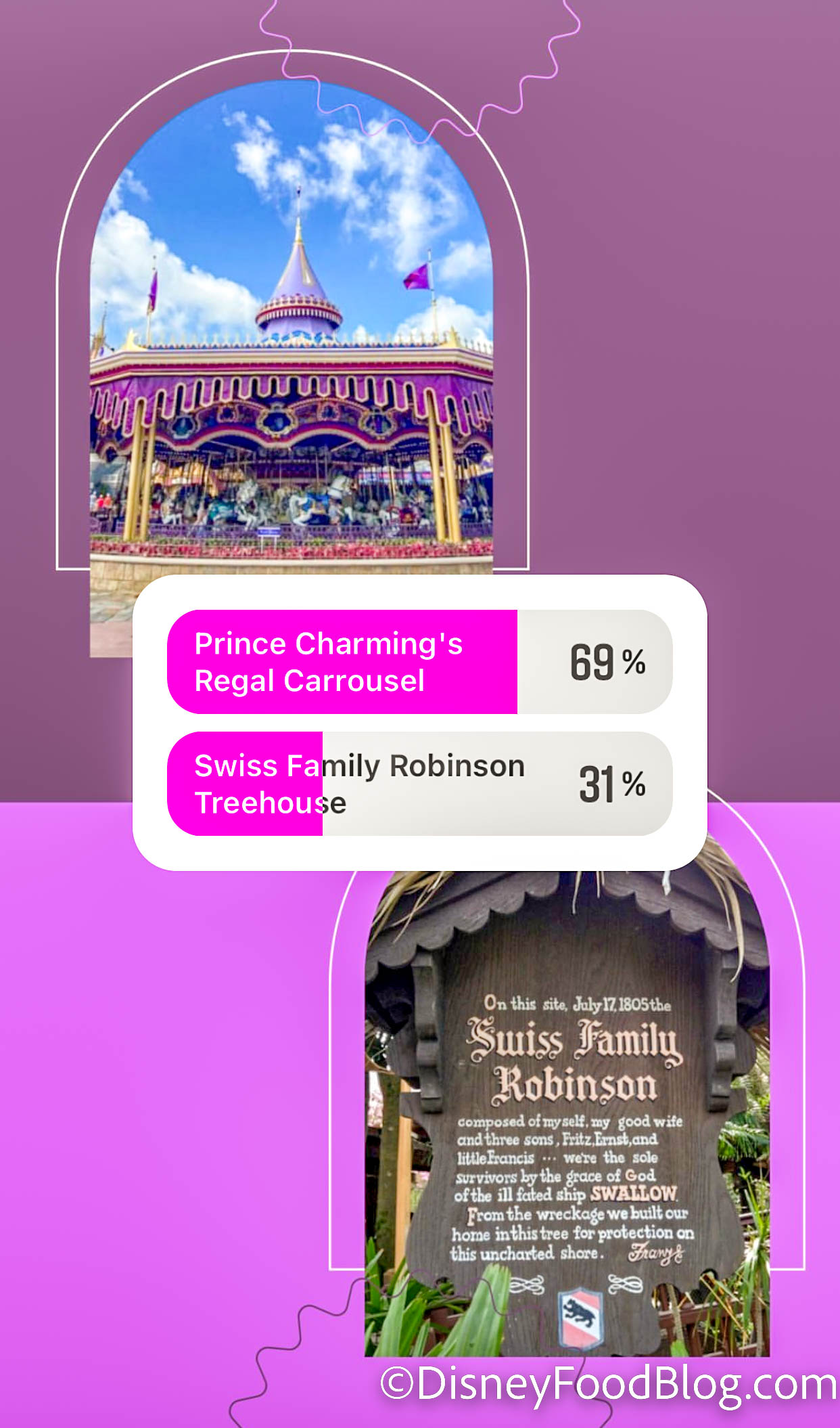 And the Prince Charming Regal Carrousel lives to fight another day! It beat the Swiss Family Robinson Treehouse with 69% of votes.