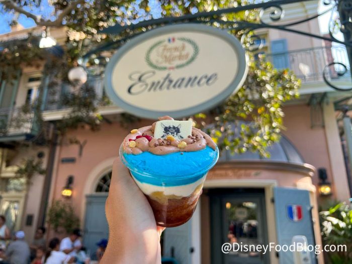 The Pirate P-arrr-fait at the French Market in Disneyland is $7.99 and features vanilla rum-flavored baba, vanilla-pineapple compote, and rum-flavored mousse with assorted decorations on top.