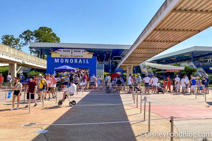 Starting out at Magic Kingdom, we first noticed the crowds when we arrived at the Transportation & Ticket Center this morning. There, the line for the monorail was pretty backed up — a sight we haven’t seen in a while!