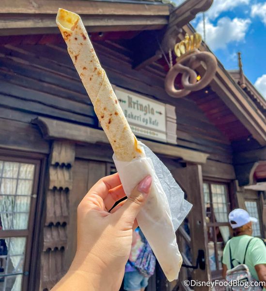 If you’re looking for a sweet treat that you can easily take on the go, Lefse is a great option — plus it’s under $5! Just keep in mind that it might not be the cinnamon sugar treat you’re expecting. In the past, we have been advised to ask a Cast Member if they can heat up the Lefse, so you might want to ask if that’s an option during your visit!