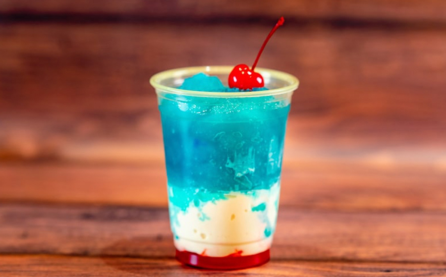 - Red, White, and Blue Cocktail: Blend of Spiced & Silver Rum, tequila, blue curaҫao, tropical fruit juices, and Italian bitters
