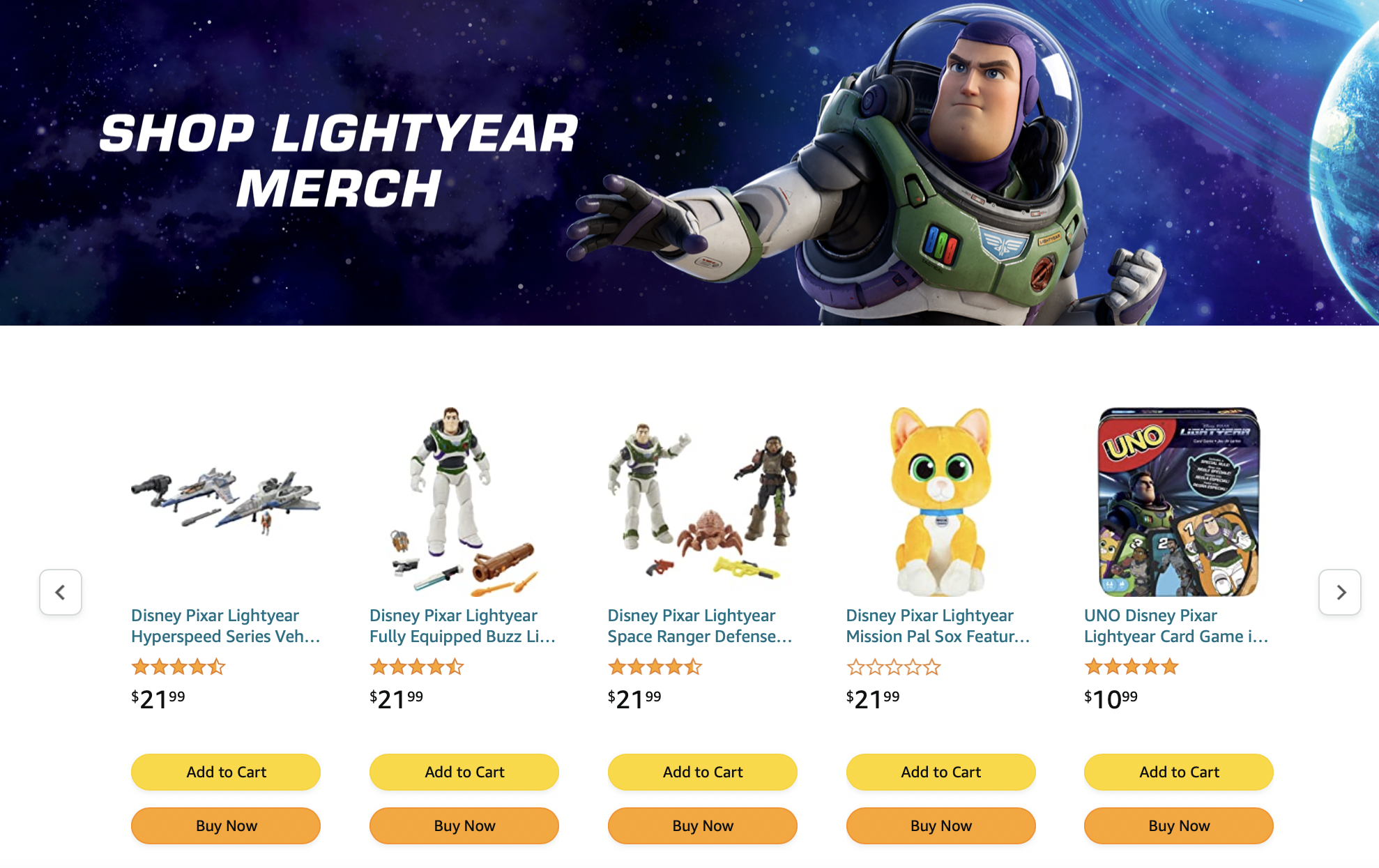 To earn the offer via merchandise, you just need to buy one of the items listed under Lightyear merchandise on Amazon.