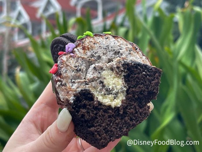 Overall, we really enjoyed this treat! The cupcake itself was very soft and moist, not too dry or heavy. The filling is creamy and light and is the perfect way to break up all the chocolate. Oh, and the frosting itself has chunks of Oreo in it — it’s literally a chocolate lover’s dream!
