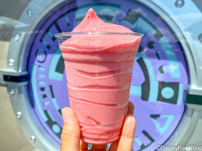 We saw their new Zurg Freeze for $6.49! It has black currant slush, strawberry dole whip, and boba pearls. It was released in celebration of Lightyear, and is super fruity!
