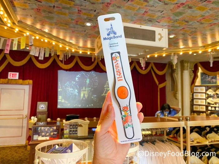 Have you guessed who it is? Yes! It’s the beloved Orange Bird! We found an Orange Bird Magicband in Magic Kingdom and it’s a special 50th Anniversary item.