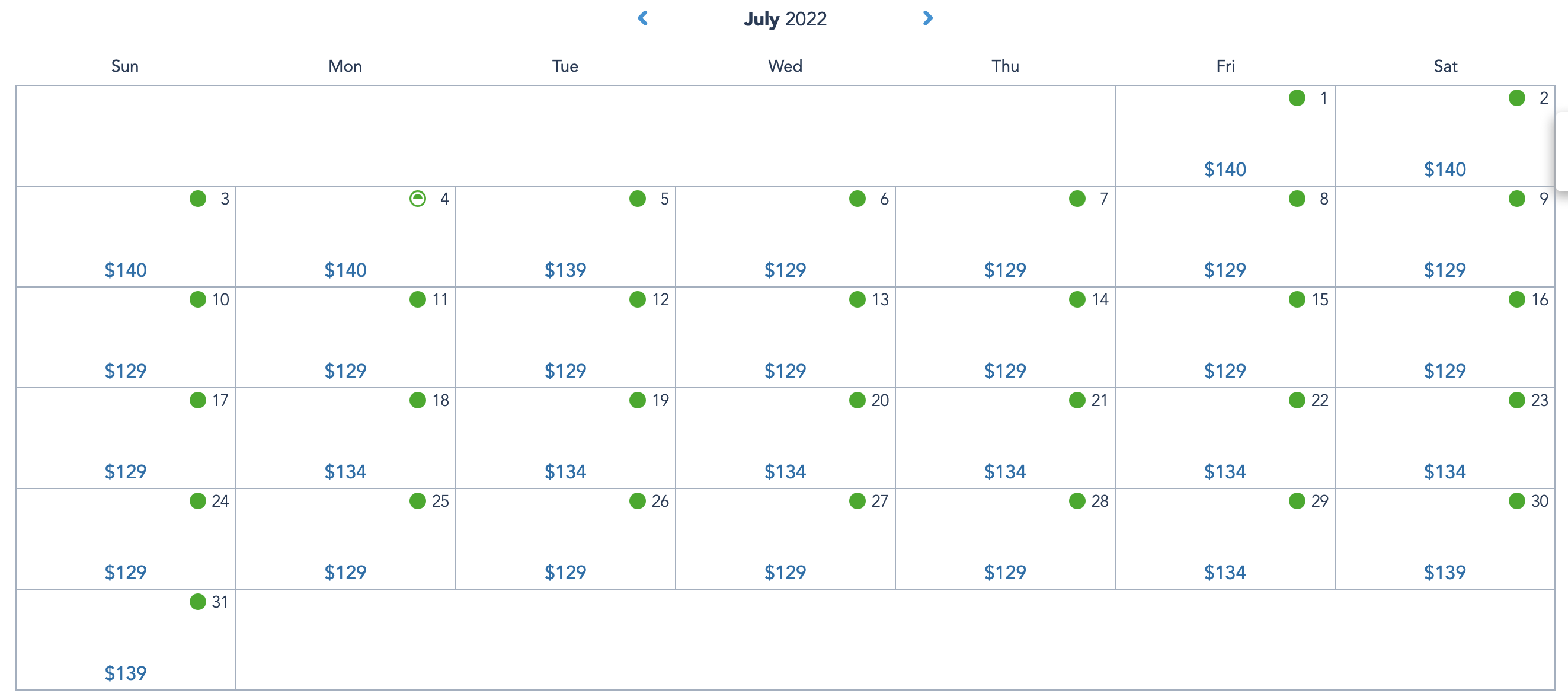 The festival kicks off on July 14th, so during the second half of the month, the cheapest days to visit EPCOT cost $129 per day. These will take place from the 14th-17th, and then again from the 24th-28th.