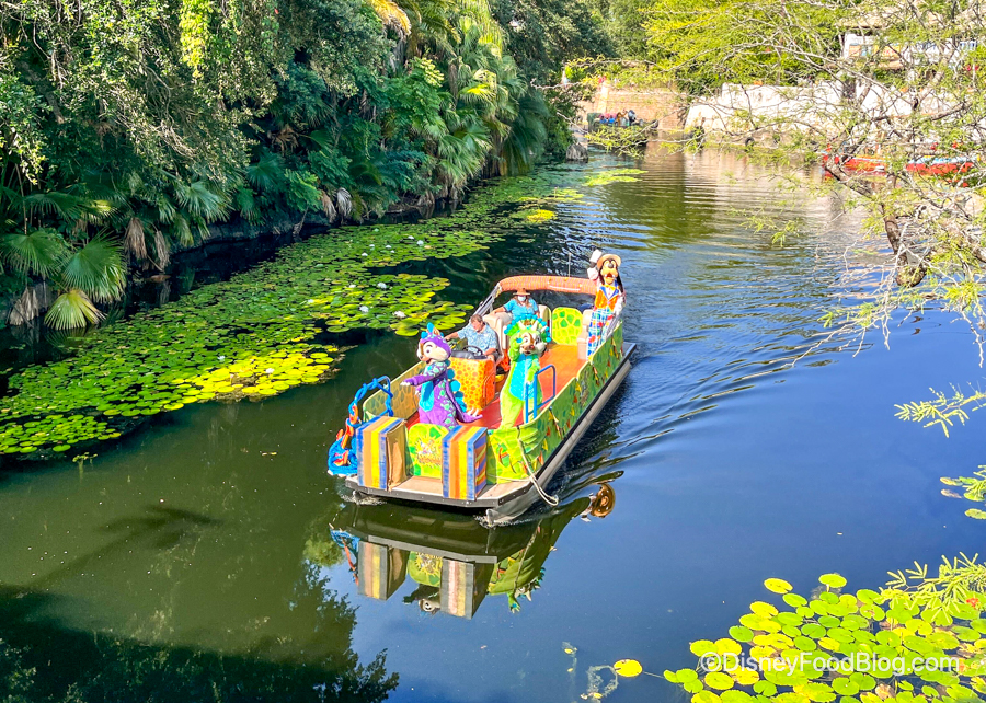 We’ve got an update on how the character flotillas are running in the park! On our most recent visit, we noticed that the boats were floating down the river in succession — three at a time.