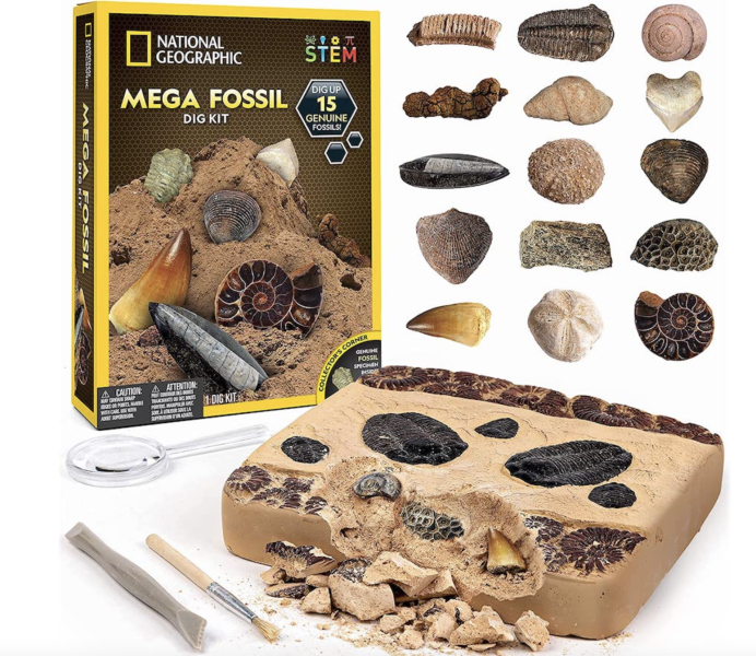 There are also some fun gifts from National Geographic available, like this Mega Fossil Dig Kit.