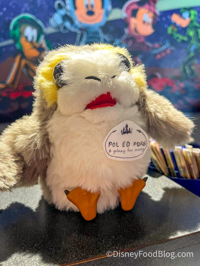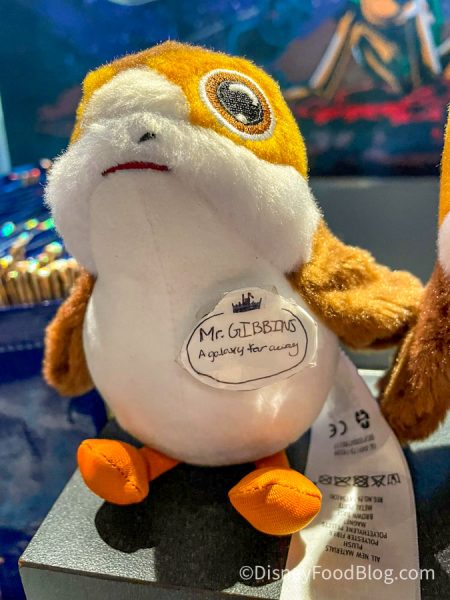 Big shoutout to the Cast Members over at Mission Space Cargo Bay for making these adorable Porg Cast Member badges — it definitely put a huge smile on our faces! This actually wasn’t the first time we ran into some unexpected honorary Cast Members in Disney World. Remember Tote Tameran the garbage can in Galaxy’s Edge??