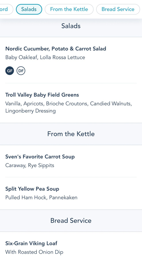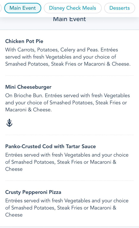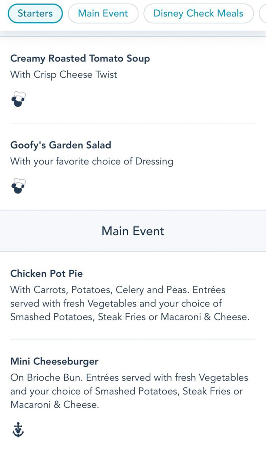 The Disney Wish offers different types of dining depending on what type of experience passengers are after: adult-exclusive dining, casual dining, and rotational dining. With rotational dining, guests rotate between the three restaurants on board, and those are the menus we’re taking a look at!