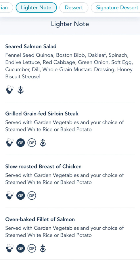 We’ve had a look a some of the exciting entertainment offerings on board, not to mention the thrilling recreation and world-class dining options. The ship has officially been christened (check out our coverage of that event here!), and now we’re bringing you a look at menus for some of the dining locations on the Disney Wish!