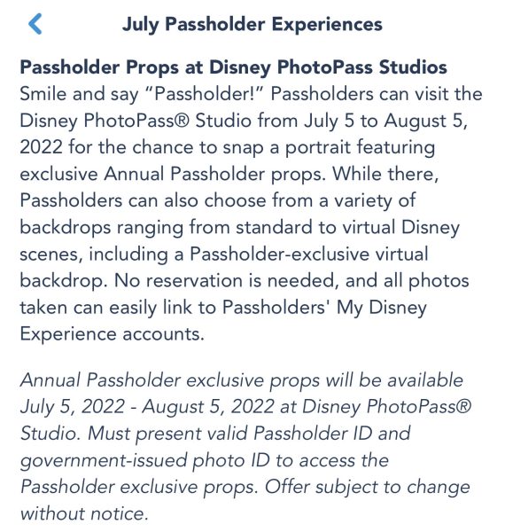 But we’re still not done yet! Passholders who visit the PhotoPass Studio in Disney Springs from July 5th to August 5th can get photos with Passholder-exclusive props. There’s even an exclusive Passholder-exclusive backdrop, too!