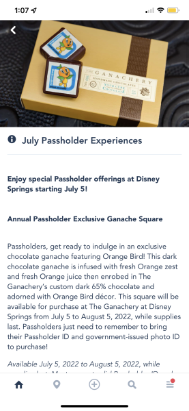 Disney World just announced MORE exclusive for passholders in Disney Springs! First, how about some chocolate? The Ganachery will have a special chocolate square with Orange Bird just for passholders! The square will be available for purchase from July 5th through August 5th, while supplies last.