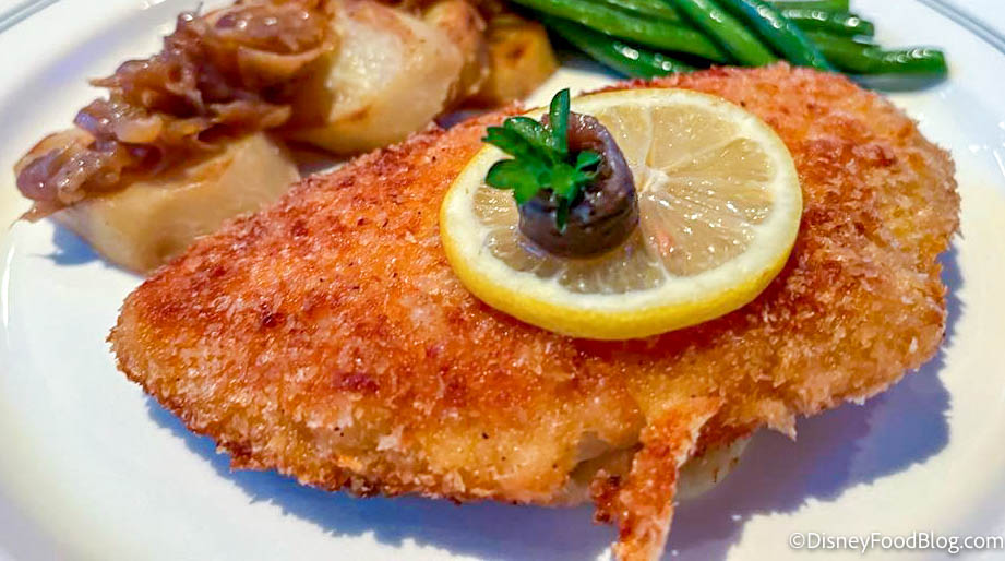 Next up we have the Chicken Schnitzel. This is made with Panko-crusted chicken breast, butter sautéed potatoes, caramelized onions, long green beans, lemon, anchovy, and capers. As one of the chefs explained, this is a guest favorite that they thought would fit in well with this restaurant concept.