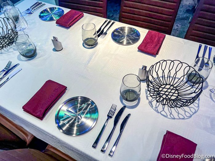 As you look around the space, you’ll notice that there is a glass wall spanning essentially the entire restaurant. The big benefit of that feature is that it lets Disney create some seriously special effects during the meal, like “power downs,” “red alerts,” and more.