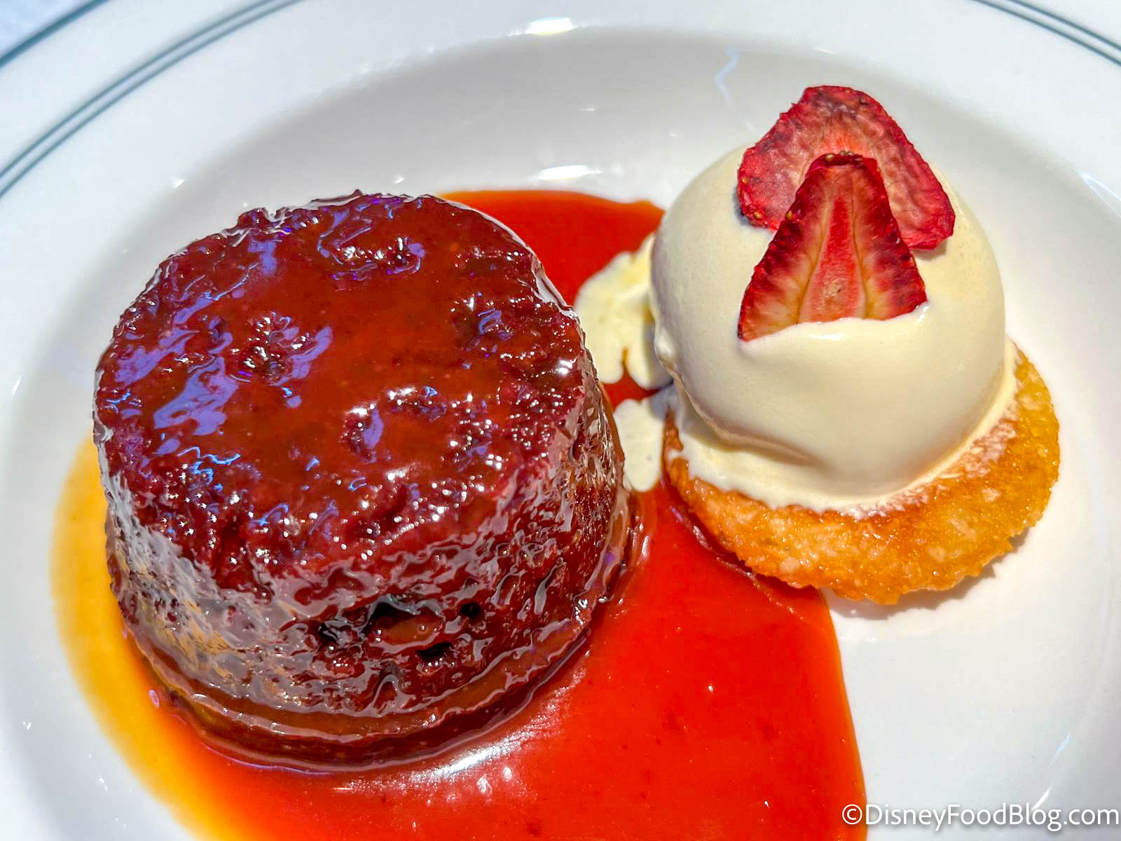 Another dessert included in Worlds of Marvel is the Subatomic Sticky Date Pudding. This is served with a salted coconut macaroon, balsamic caramel glaze, and vanilla ice cream. Previously, this was going to be a Sticky FIG Pudding, which is what we got to try back at a media event in 2021. But, again things have changed now and it is a Sticky DATE Pudding.