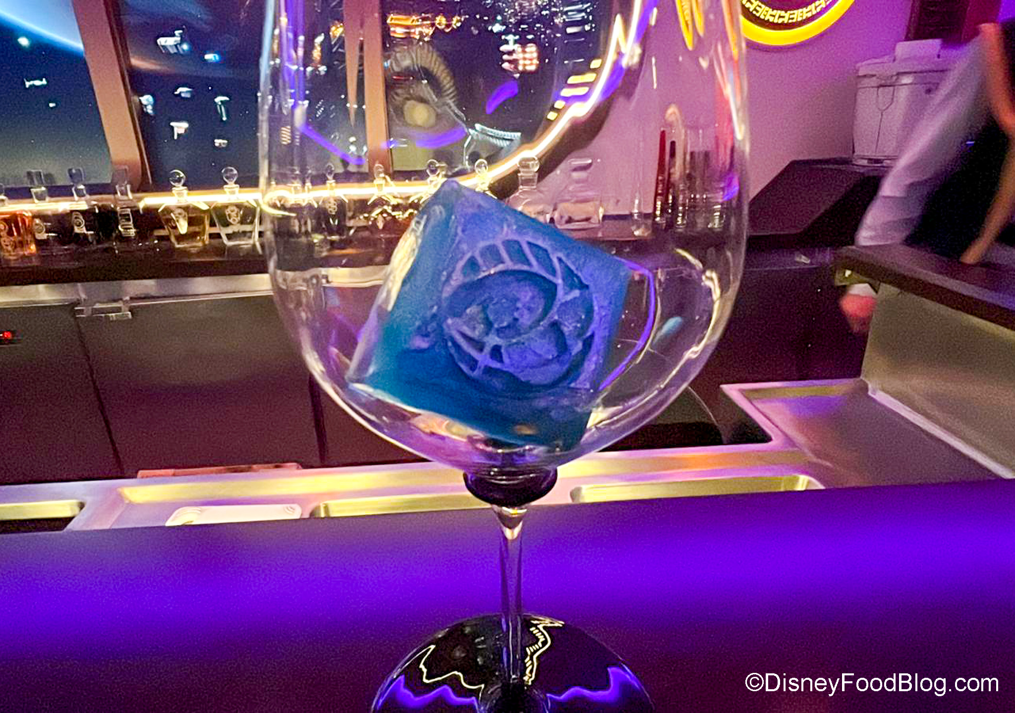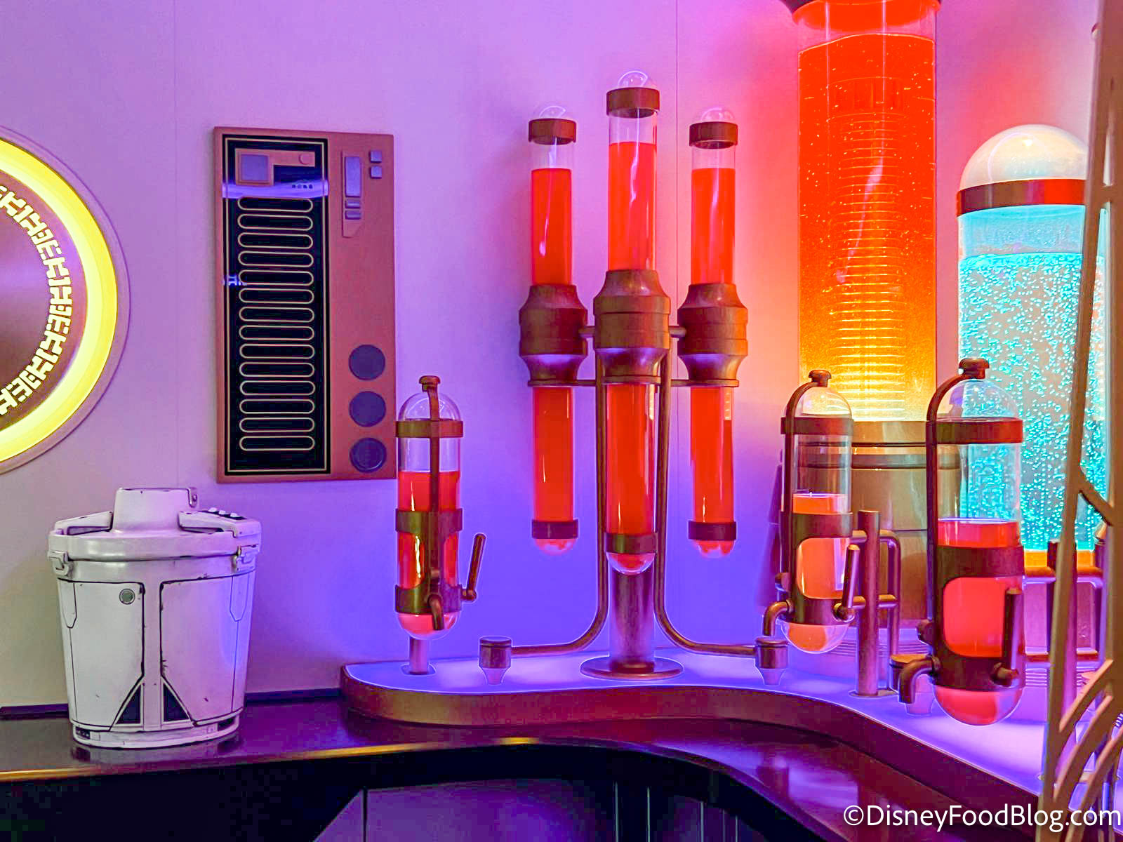 So what’s really cool about this lounge is that all the bottles being used for drinks here have Hyperspace Lounge-specific labels — with each being its own spirit. The theming here is ON POINT.