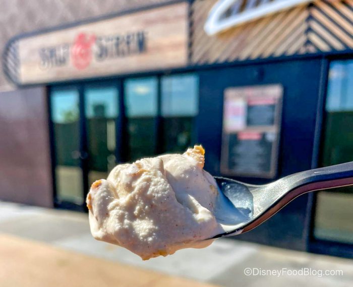 This was a must-eat treat! It was light and bright, with a subtle lemon flavor and a fresh taste from the mandarins. We also loved the crunchy texture from the almond biscotti! We wish it was around for longer, but maybe Disney will bring it back someday.