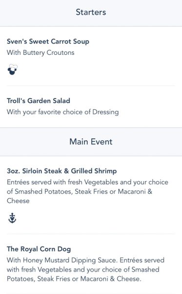 - You’re looking for “safe” food options with some more unique flavor twists — While there are some more standard offerings (like a chicken and a steak dish) some of these dishes do feature more unique flavors or come with a bit of a unique twist. With things like lingonberry chutney, dill honey mustard, and Mjod Vinaigrette, you’ll get to expand your palette without being too adventurous.