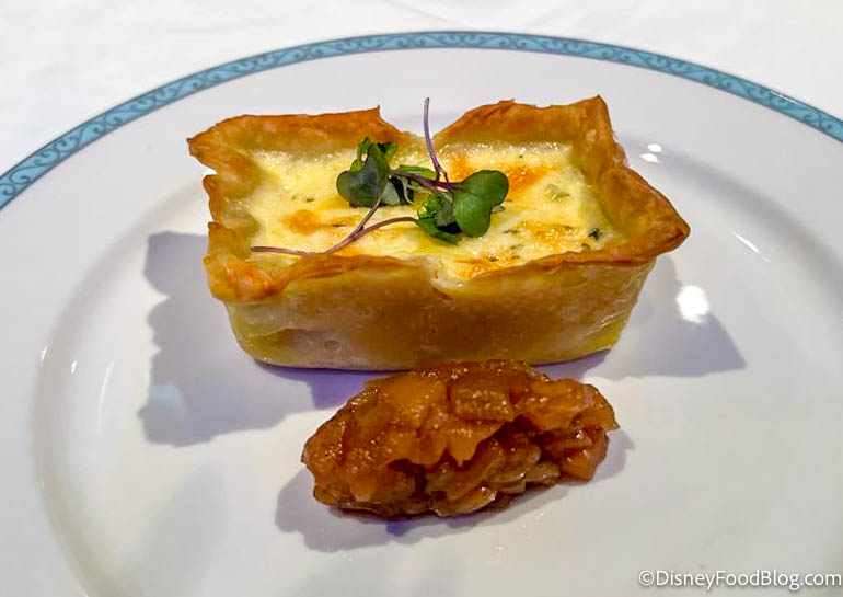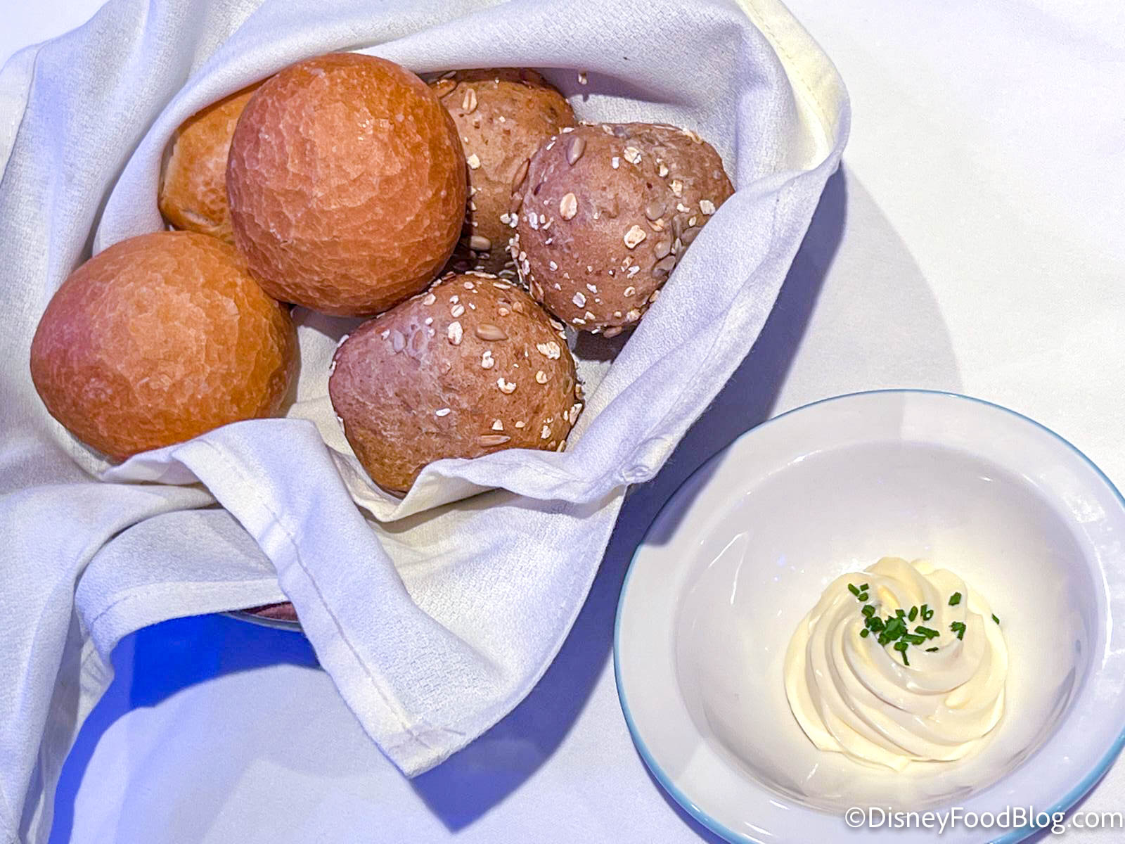 We started our meal with the bread service which is Six-Grain Viking Loaf served with a roasted onion dip. Like the bread at the other rotational dining locations, we found it kind of hard and chewy. It didn’t really taste very fresh.