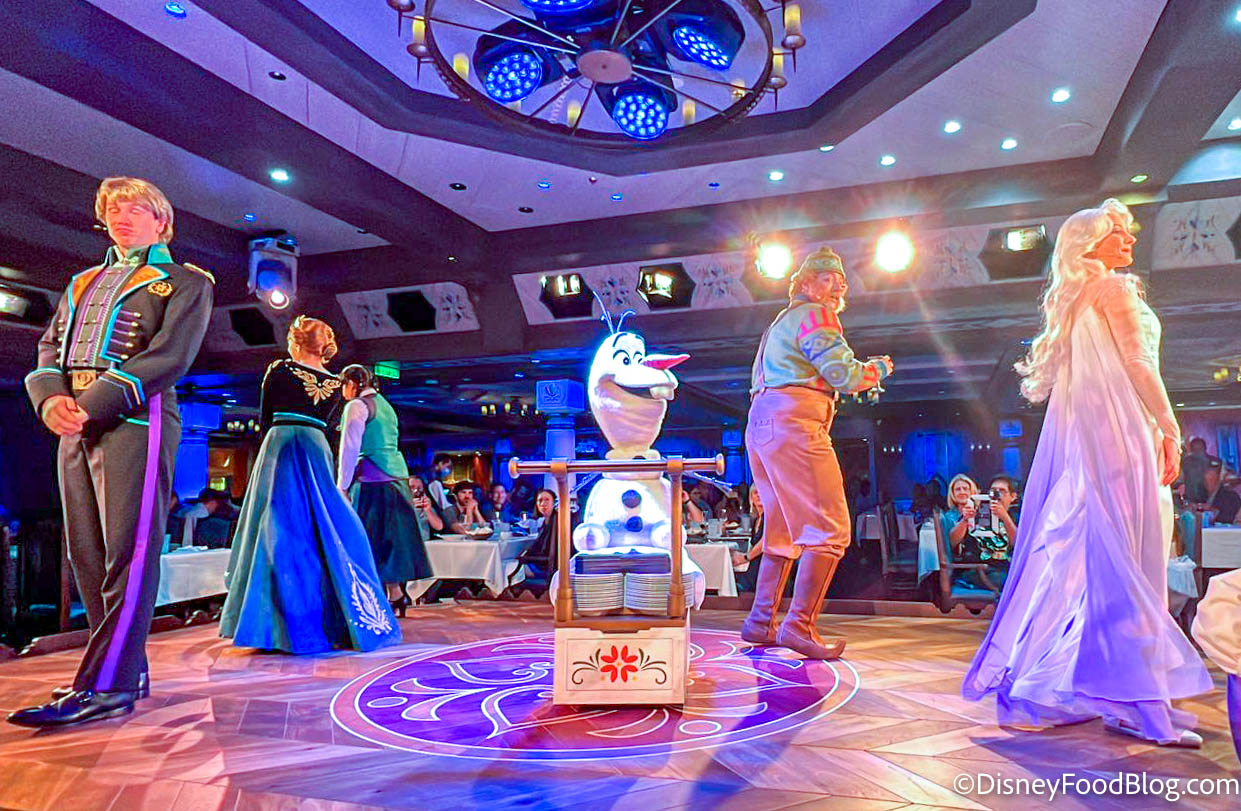 During your meal, there are several musical performances. You can enjoy being serenaded by Elsa, Anna, Kristoff, and Olaf…
