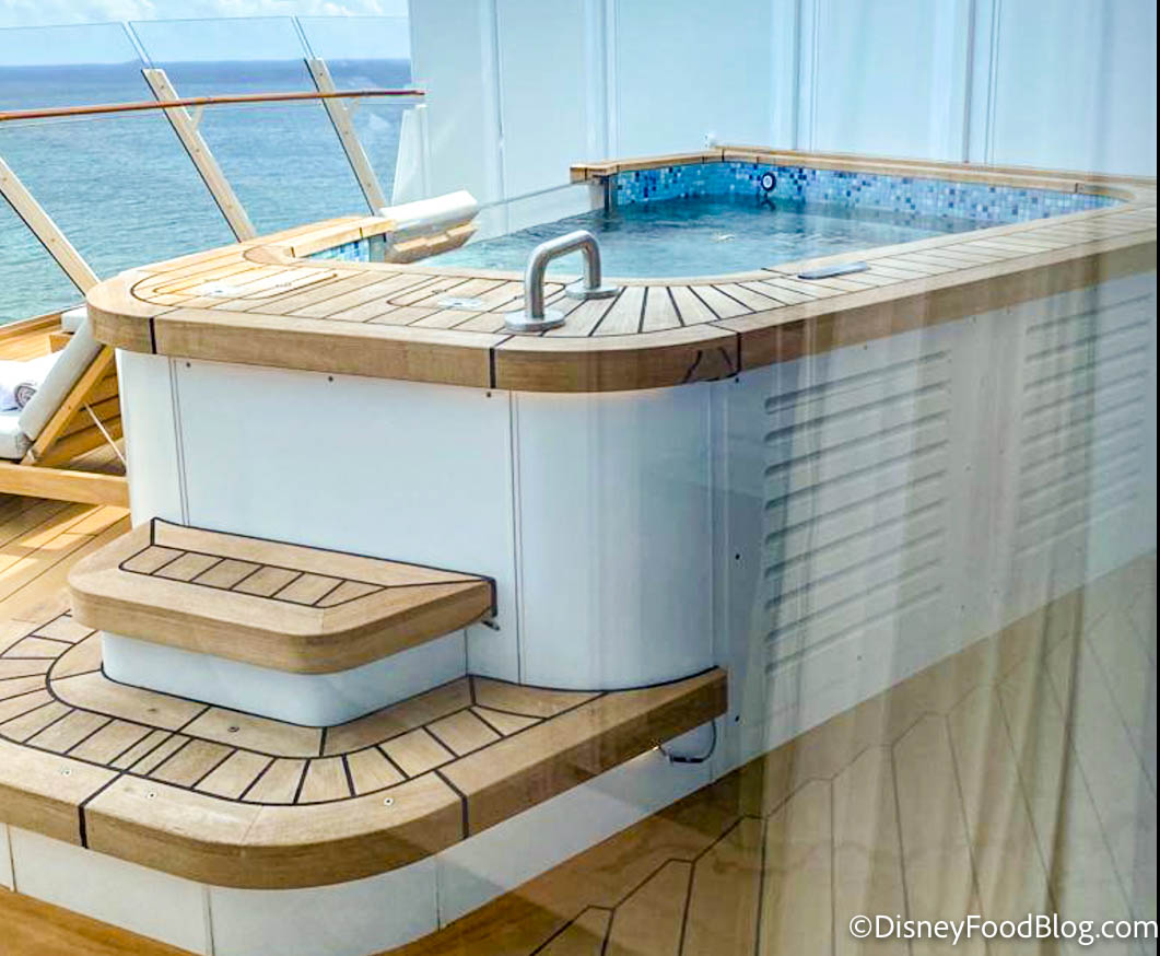 But if you REALLY want to feel luxurious, check out the private verandah with whirlpool tub! This totally private space has lounge chairs and a whirlpool tub, complete with unobstructed ocean views.