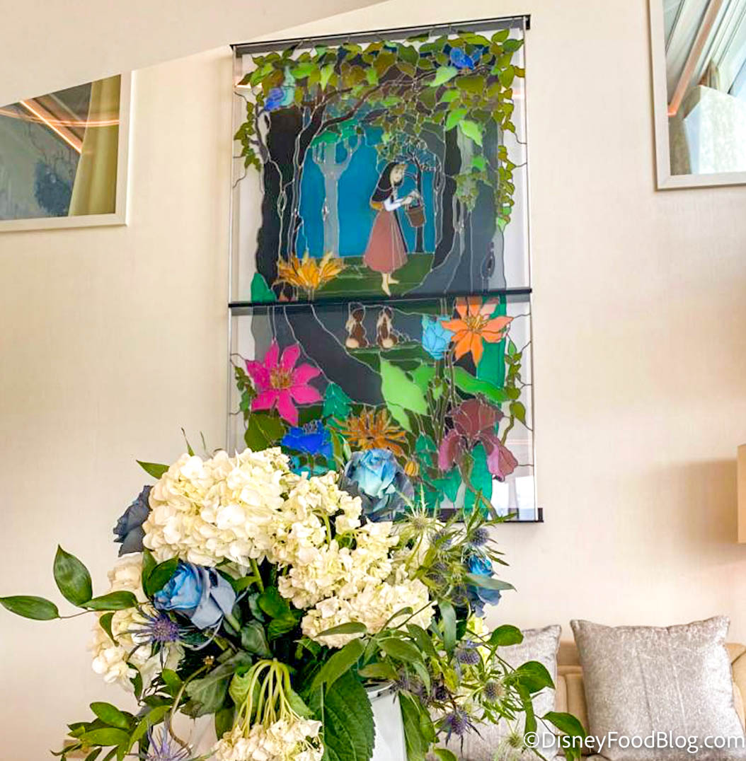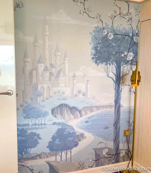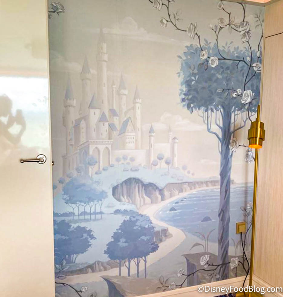 Back inside the suite, you might want to take some time to check out the Sleeping Beauty-inspired murals, like this one featuring Princess Aurora’s castle.