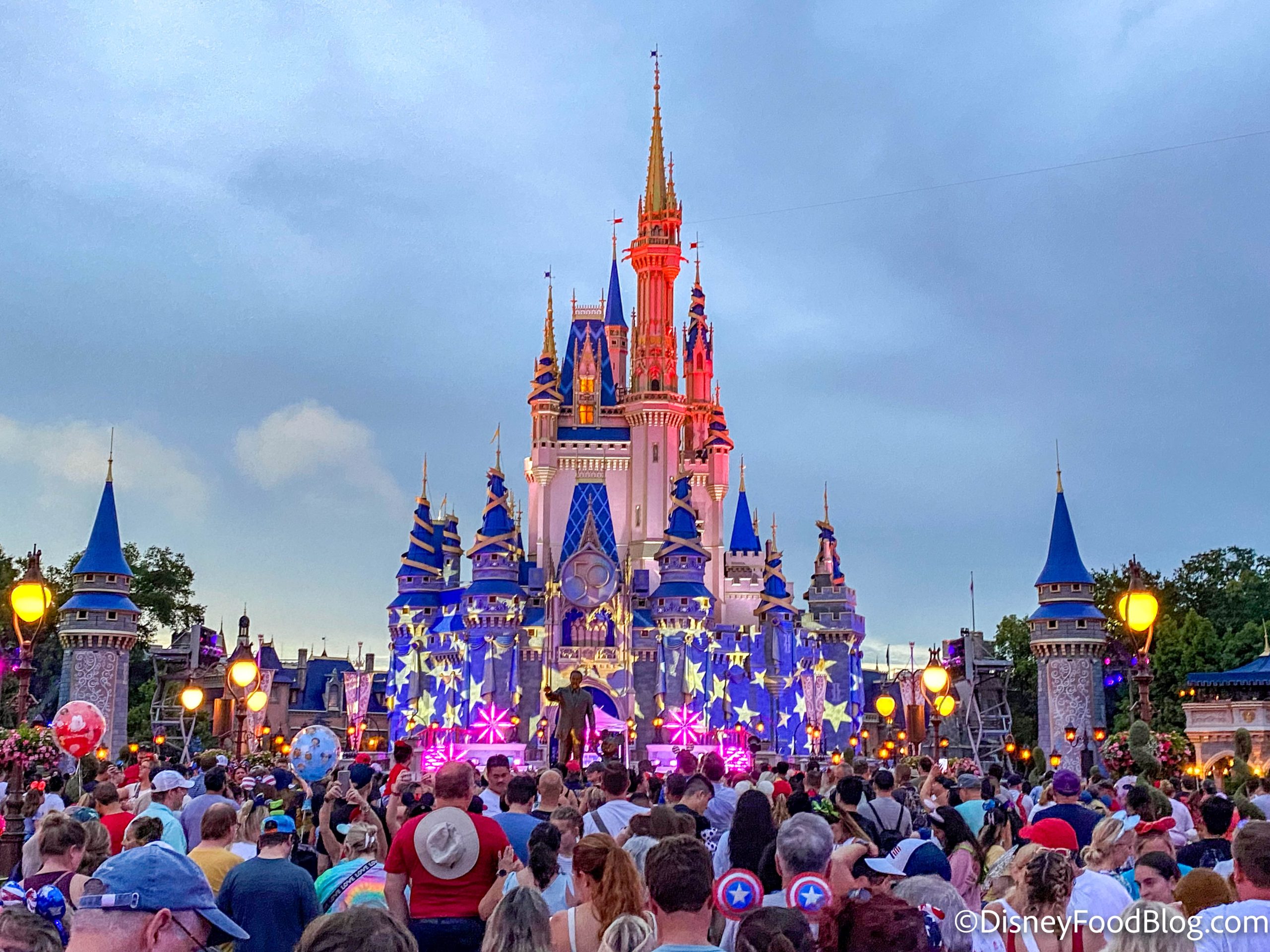 For starters, Disney releases lots of red, white and blue snacks right around the holiday. Whether it’s cupcakes, cookies, or tarts you’re after, Disney’s got it! There are also 4th of July ears you can pick up, 4th of July plushes, and some other merchandise to check out. We’ve also been excited about the return of 4th of July fireworks to Magic Kingdom and EPCOT. This year, we went to check out the 4th of July fireworks at Magic Kingdom and we’re sharing ALL of the information with you.