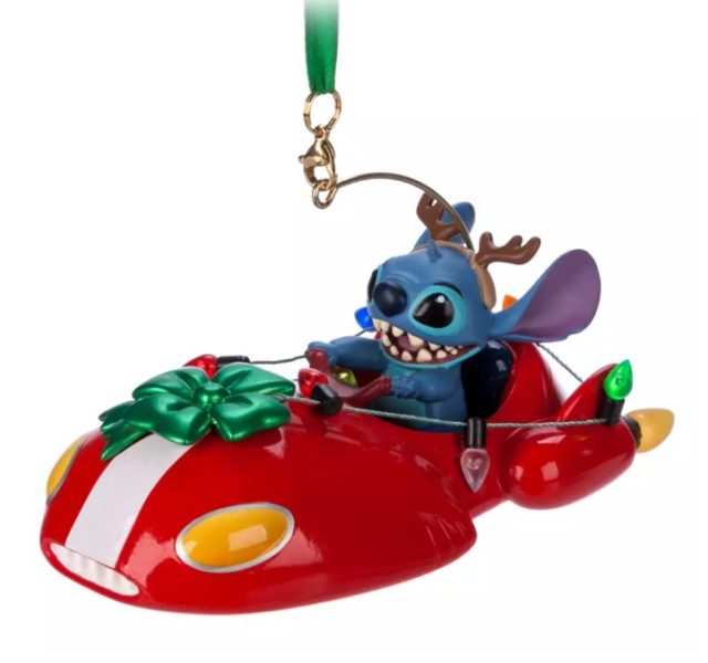 We’ll end with our favorite blue alien, Stitch! The Stitch Ornament features Stitch flying his Speeder, which is decorated in holiday lights (which don’t actually light up).