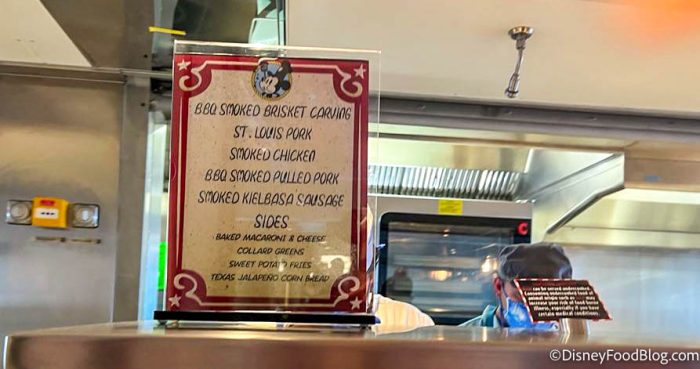 Since this is a quick service spot, you’ll just head up to the counter to order what you want! We decided to try the BBQ Smoked Brisket Carving, BBQ Smoked Pulled Pork, Smoked Kielbasa Sausage, Baked Mac & Cheese, Sweet Potato Fries, and Texas Jalapeño Corn Bread.