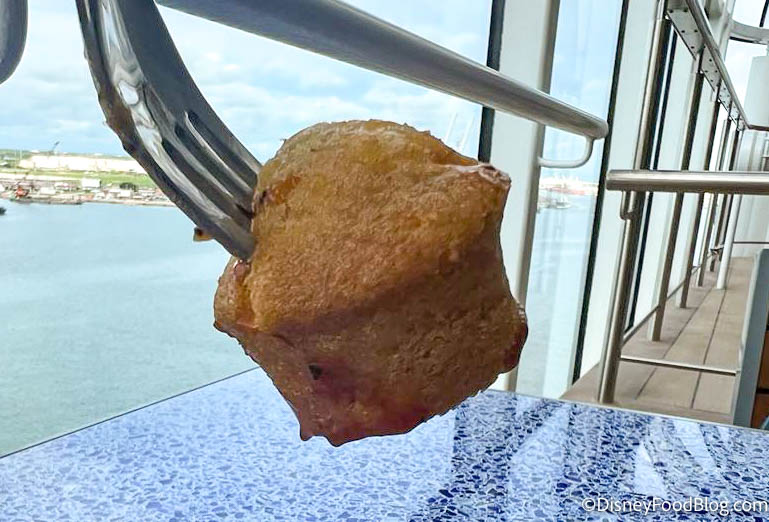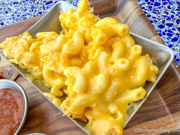 We did enjoy the mac and cheese, though it was your standard Disney buffet mac and cheese — not that there’s anything wrong with that! The breadcrumbs on top didn’t seem to be “baked” in and were just kind of sprinkled on top. The sweet potato fries were probably our favorite item on this plate. They were perfectly cooked and crispy on the outside and nice and fluffy on the inside.