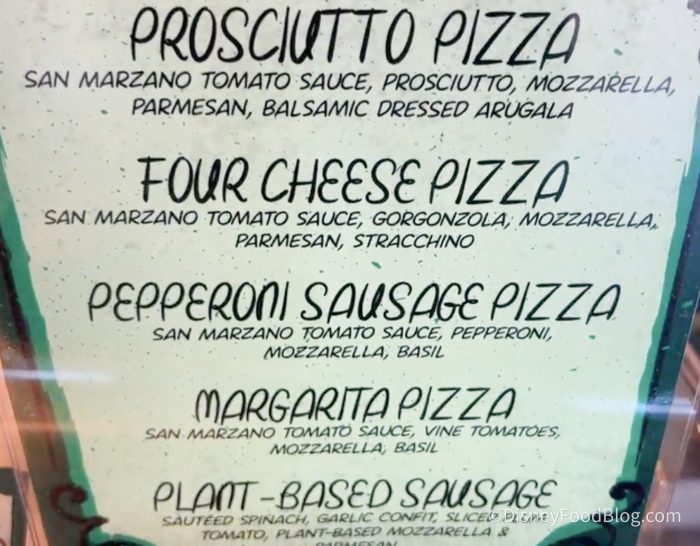 We also checked out some items at Daisy’s Pizza Pies, and there they serve up Prosciutto Pizza, Four Cheese Pizza, Pepperoni Sausage Pizza, Margarita Pizza, and a Plant-Based Sausage Pizza.