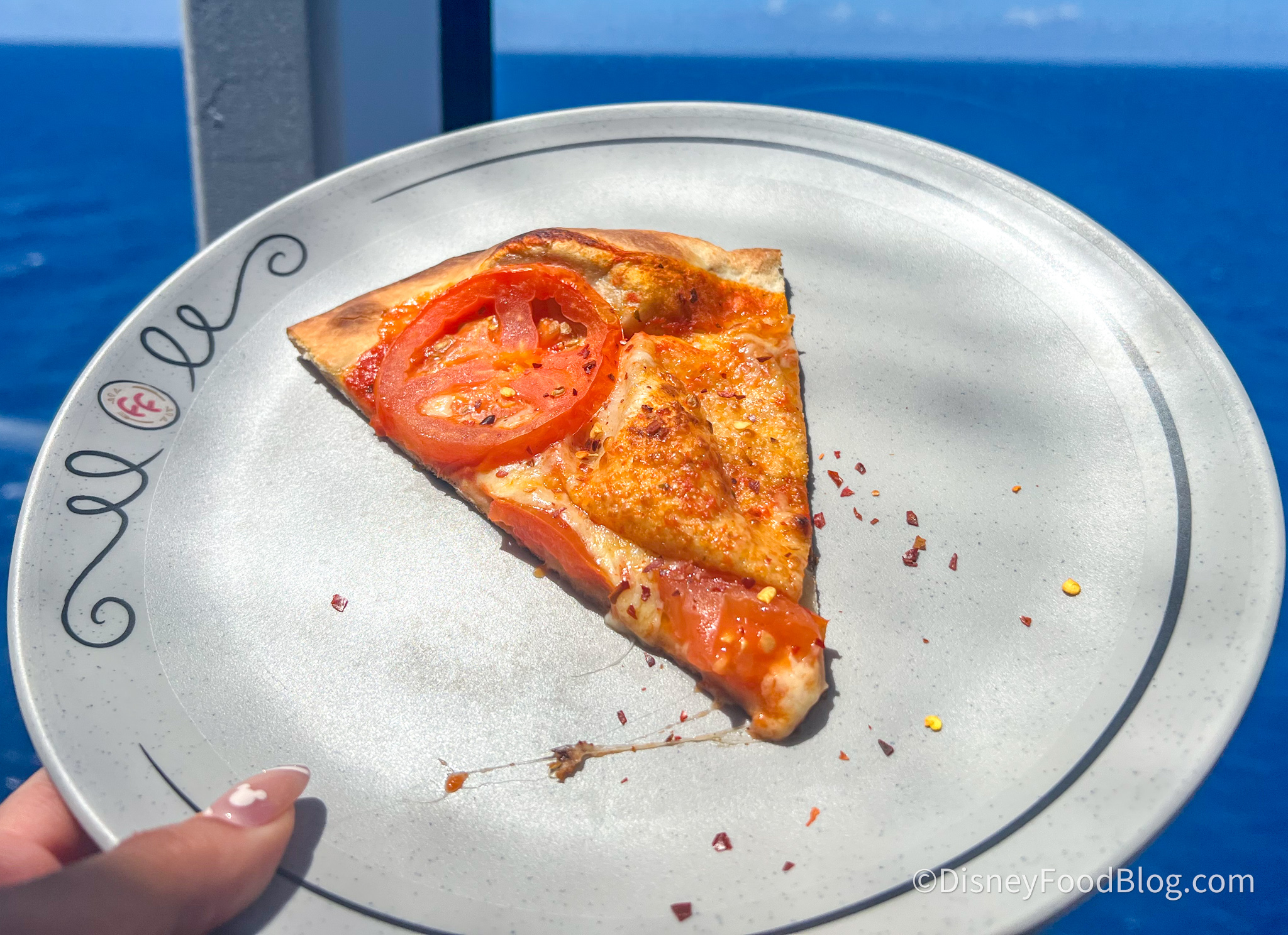 We also tried a slice from Daisy’s Pizza Pies! We went with the Margherita Pizza, which is made with San Marzano tomato sauce, vine tomatoes, mozzarella cheese, and basil. Overall, it wasn’t anything TOO special — but it absolutely hit the spot! You can get fresh slices here, and if the kind you want isn’t ready, the Cast Members can make it in 7 minutes!