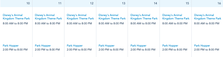 Disney’s Animal Kingdom will be open from 8AM until 8PM every day next week!