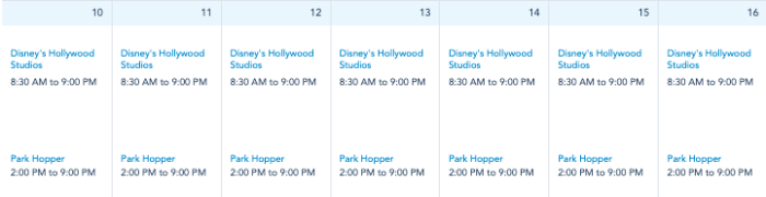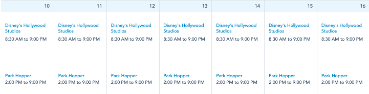 Those are the EPCOT hours, let’s take a look at Hollywood Studios!