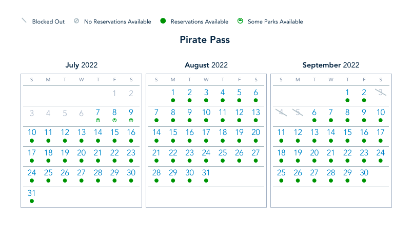 Pirate Pass Reservation Availability