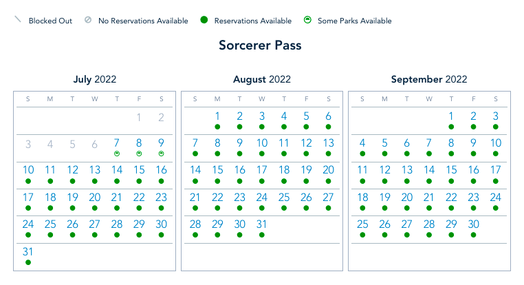Sorcerer Pass Reservation Availability