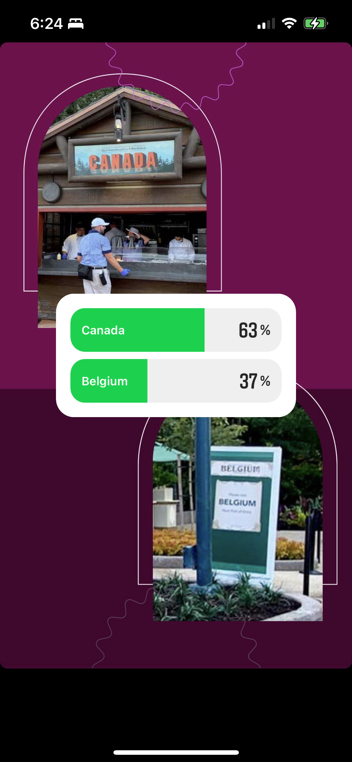 Next up is Canada vs. Belgium. We think maybe that Cheese Soup in Canada swayed the vote here, because Canada won with 63% of the vote, while Belgium got 37%.