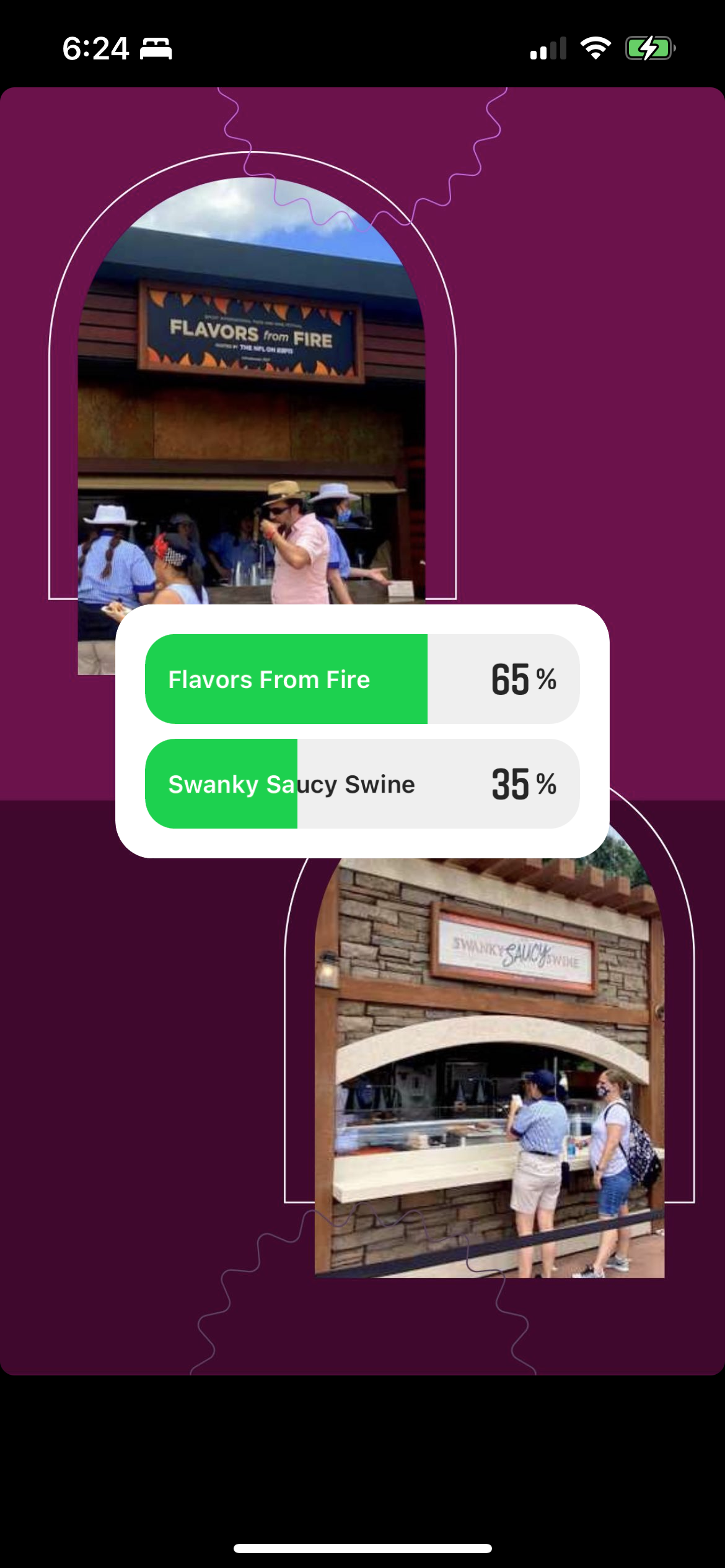 Next up is Appleseed Orchard vs. Shimmering Sips. Appleseed Orchard is all about fresh apple snacks and drinks, while Shimmering Sips serves up the bubbly! Shimmering Sips takes home the prize in this round with 53%, while Shimmering Sips is at 47%.