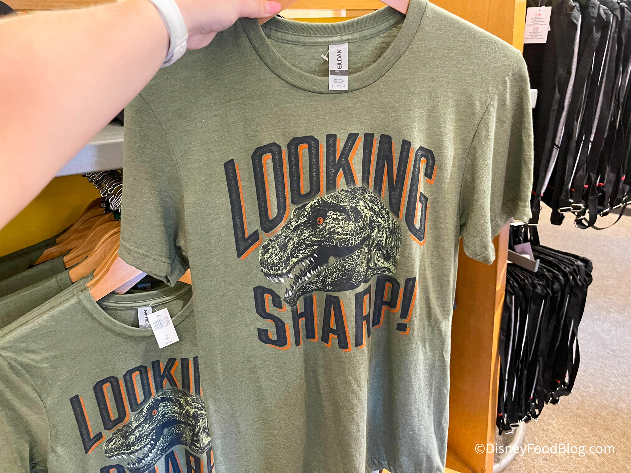 We spotted two new-to-us shirts in the Dino Institute Shop, which is the gift shop connected to the Dinosaur ride. First, we saw this shirt that has a picture of a T-Rex and says “Looking Sharp!” It is $24.99.