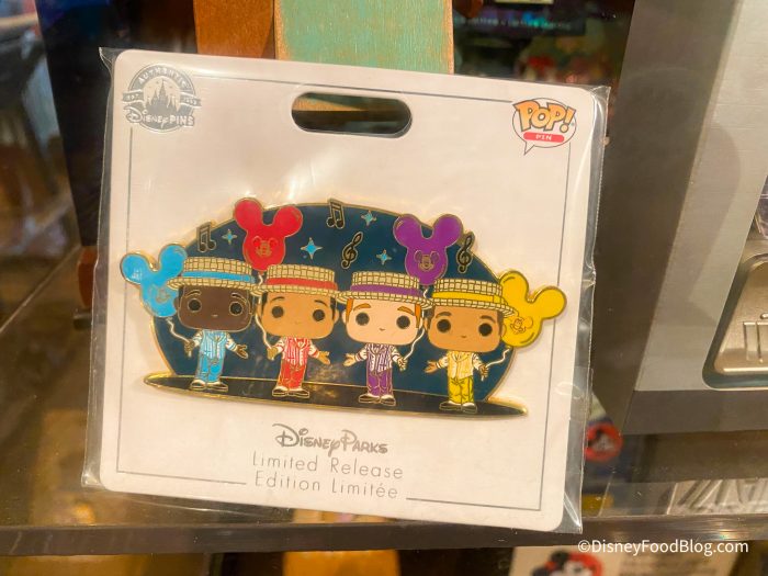Another pin we saw was this Funko POP! Dapper Dans pin. It has each of the four Dapper Dans holding a Mickey balloon! This pin is a limited-release pin and is available for $15.99.