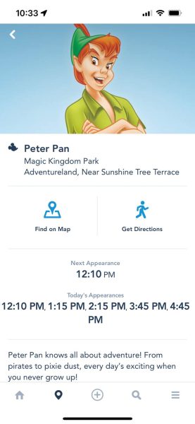 So if you’re trying to find Peter Pan in Magic Kingdom, be sure to check the My Disney Experience app for updates, but also keep your eyes open!