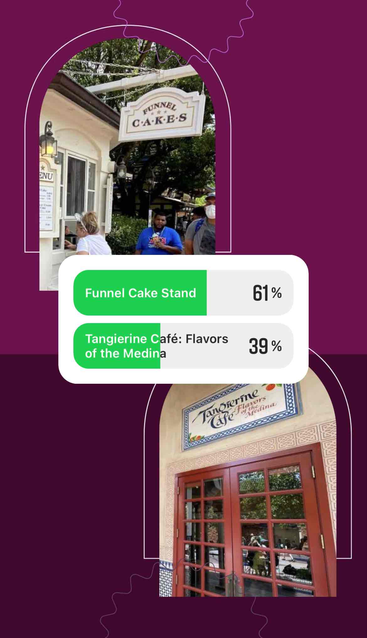 And finally Funnel Cake Stand vs. Tangierine Cafe: Flavors of Medina! Funnel Cakes reigned supreme on this one, as the booth won with 61% of the votes! Tangierine Cafe fell flat with only 39%.