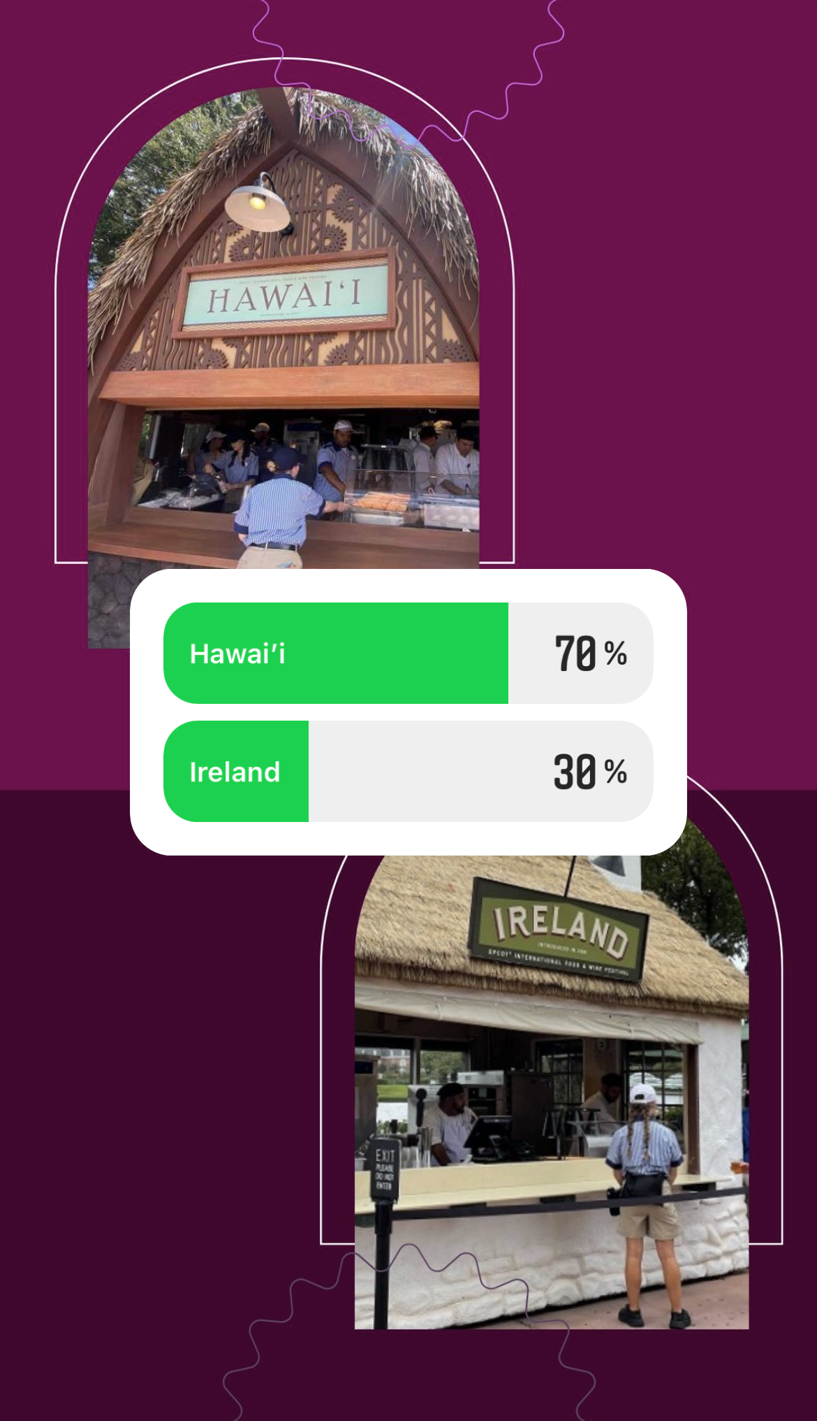 Now, onto Hawai’i vs. Ireland. Pork sliders and Kona IPA or Seafood Pie and Irish Cream Ale? Well, it looks like you prefer tropical vibes, as Hawai’i won with 70% of the votes, leaving Ireland with only 30%.