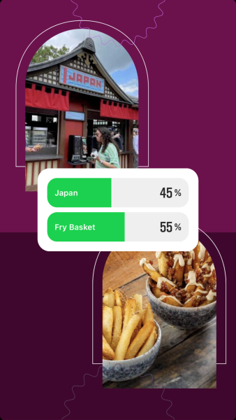 Our next battle was Japan vs. Fry Basket! Old vs. new…who will come out on top? Well, this one was pretty close, but Fry Basket won 55% of the votes, leaving Japan with only 45%. We’re excited to try the new Fry Basket booth and it seems you are too!