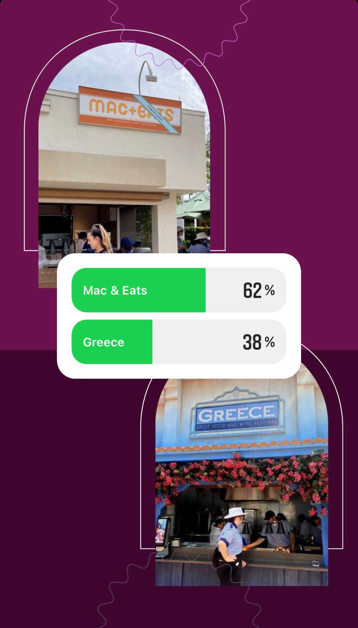 Now, back to some returning booths — Mac & Eats vs. Greece! Mac & Cheese won with 62% of the votes, while Greece had 38%. It seems like it may be very hard to beat Mac & Cheese! Will another booth be able to take it down? Only time will tell!