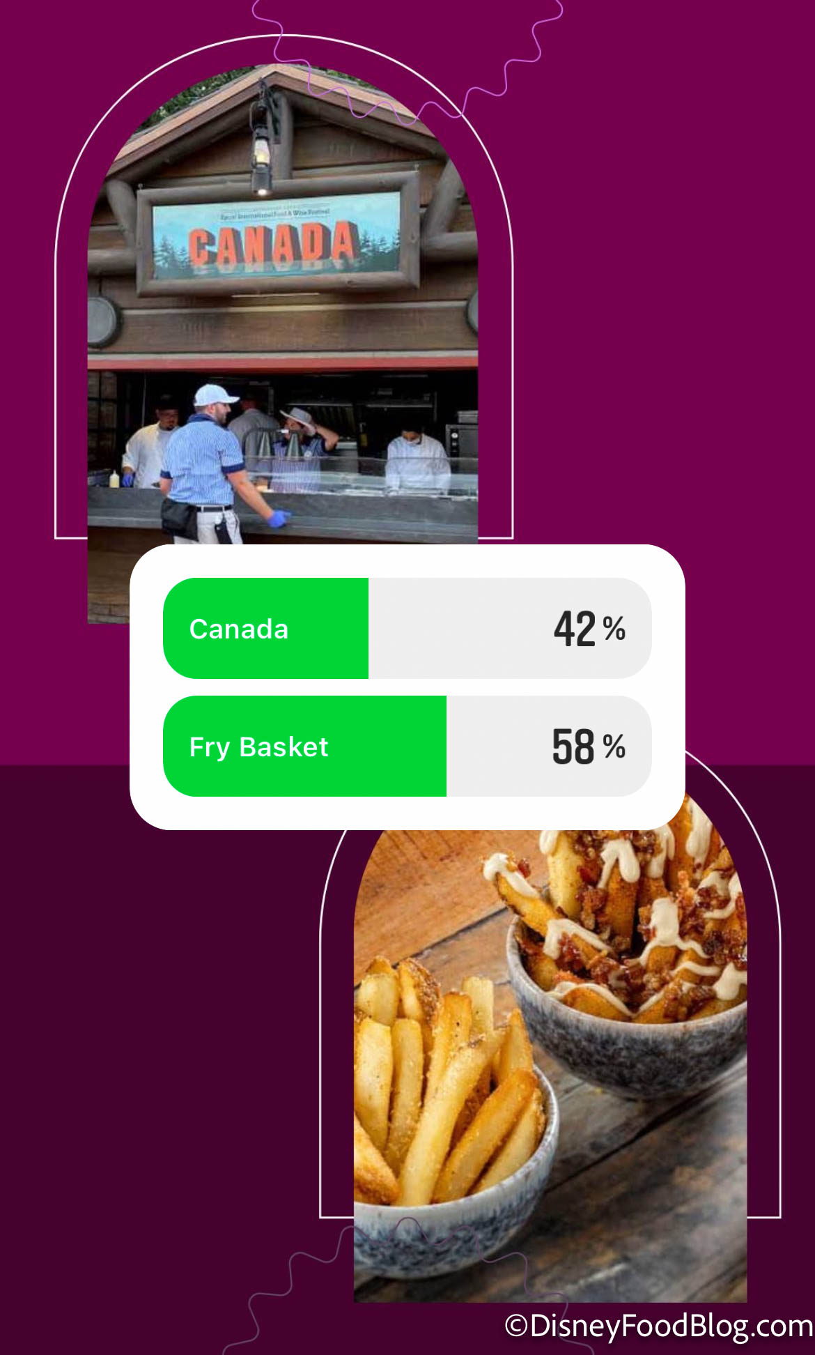 When it came down to Canada vs. the new Fry Basket booth, our readers chose the NEW booth as the winner with 58% of the votes! The Canadian Cheddar Cheese and Bacon Soup might be a festival favorite but apparently, the call of new fries is a bit more exciting.