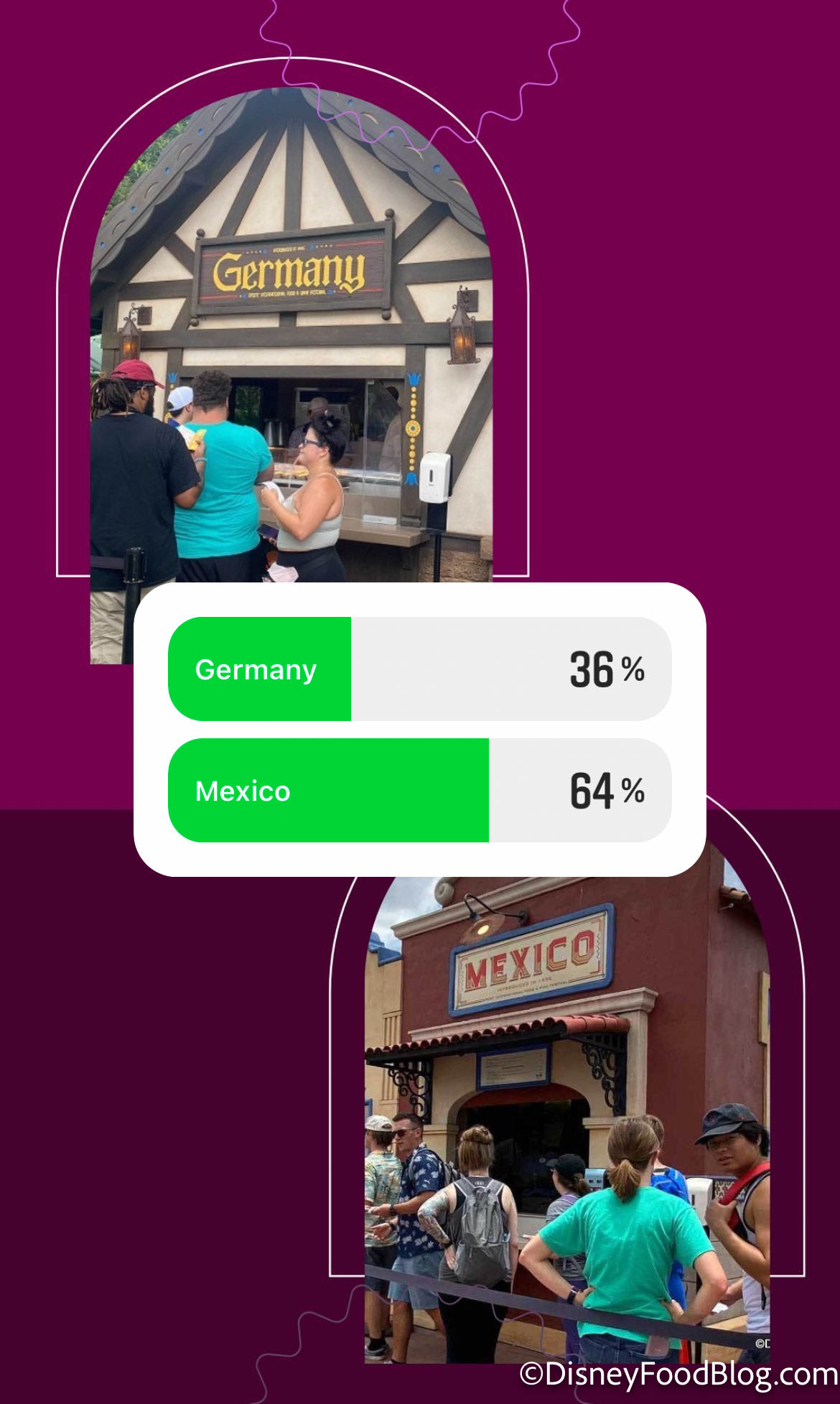 First up, we’ve got two favorite booths up against each other — Germany vs. Mexico. Ugh, how do you choose between Schinkennudeln and tacos and tostadas?? Well, our readers have spoken, and Mexico won with 64% of the vote!