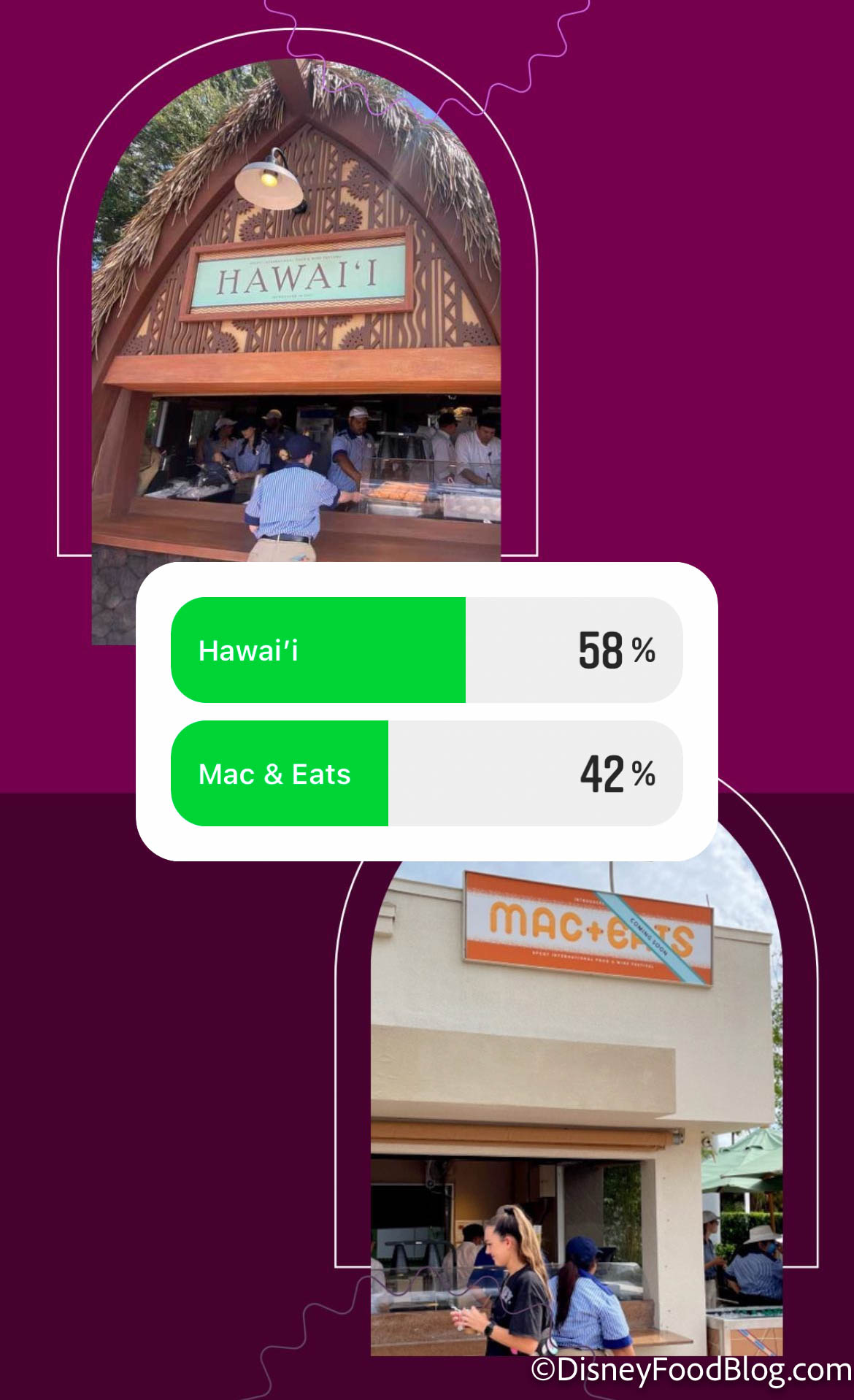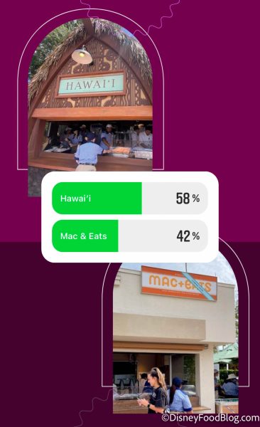The last bracket was harder for our readers, with Hawai’i vs Mac & Eats. Although Mac & Eats came close, Hawai’i won with 58% of the votes! Mac & Eats features macaroni and cheese dishes, while Hawai’i has the classic Kālua Pork Sliders and a NEW dish this year.