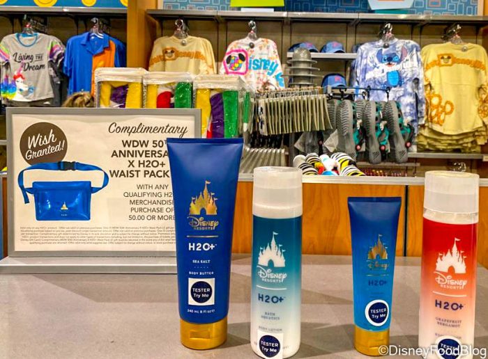 No, we’re not kidding. These aren’t just any toiletries — they’re products that come from Disney’s H20+ line! And, if you’re hoping to buy some, you might get a free 50th-Anniversary gift with your purchase!